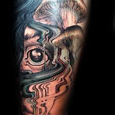 Trippy Mushroom Tattoo - White Rabbits In A Purple Haze Psychedelic Tattoos Tattoodo : I've been wanting to get my dragon tattoo surrounded like that, with clouds or geometric patterns shaded in, but i don't know what to ask for.